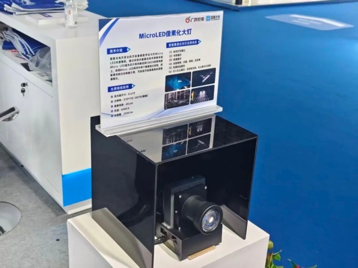 作为展区亮点,国星光电重点呈现了以Micro LED大灯为核心技术的全系列ADB方案。该方案覆盖百级至百万级像素,灵活适配矩阵大灯、智能交互与投影等场景。其中万级数字化车灯方案采用国星光电自研巨量转移技术,实现最小点间距,以差异化技术路径加速智能驾驶照明系统升级。