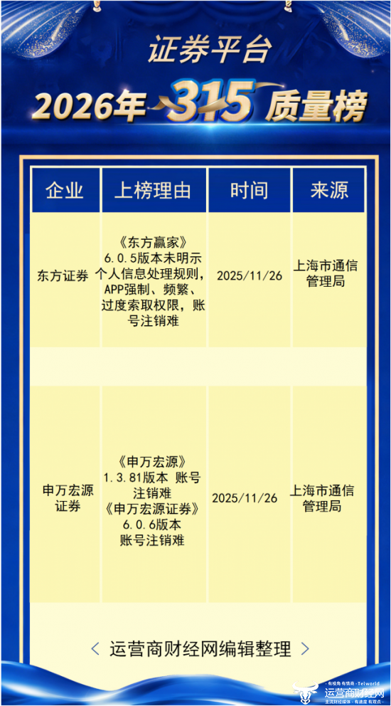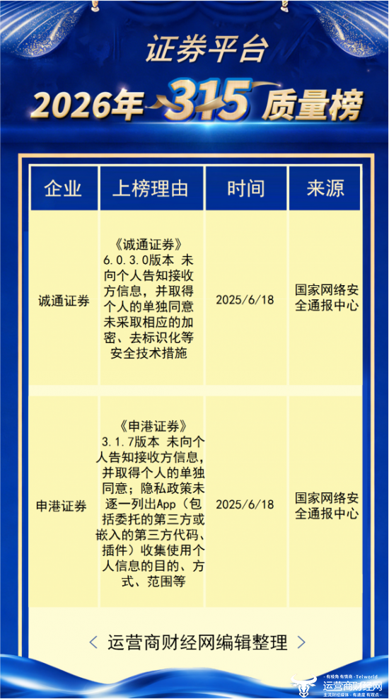 恰逢一年一度的年证315消费者权益日,运营商财经网对过去一年中,券平金融各领域存在的台侵题欧亿侵害消费者权益问题和现象进行了梳理。针对券商行业,犯用推出了“运营商财经网2026年315证券平台侵犯用户隐私榜”。户隐还多家公司因旗下互联网平台出现违规行为而被点名。私榜