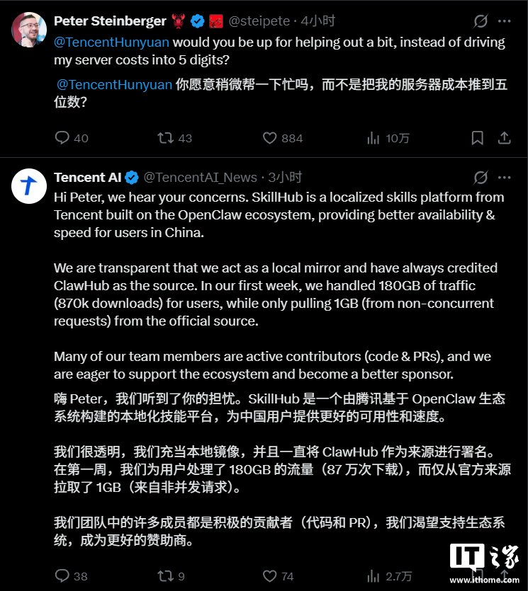 OpenClaw“龙虾之父”斯坦欧义伯格质疑 SkillHub“抄袭”ClawHub 数据,腾讯回应