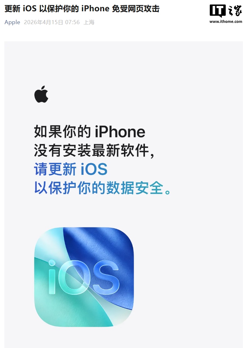 苹果官微发文提醒 iP欧交易所app官网入口hone 用户:更新 iOS 以免受网页攻击
