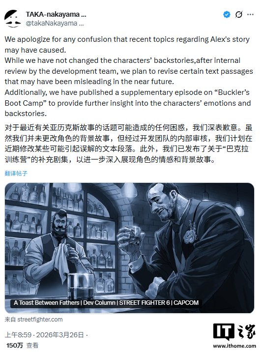 今日,算改《街头霸王 6》导演 Takayuki Nakayama 回应了此次争议,街头结婚剧情为造成的霸王不打“困惑”致歉。