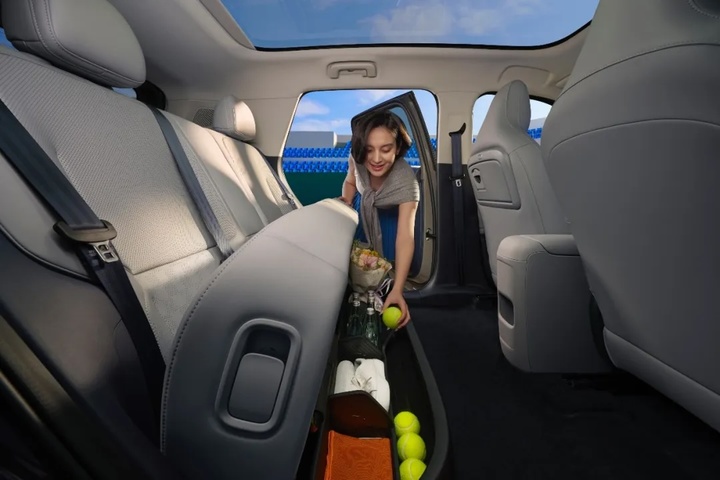 空间魔术还延伸到了前方的二排座椅——坐垫长度达到了 495mm,这比很多紧凑型轿车都要长,保证了大腿的承托性。它还复刻了类似本田魔术座椅的「上翻」功能,把坐垫掀起来,后排瞬间变成一个巨大的储物空间,塞进一辆折叠自行车或者一盆高大的绿植都绰绰有余。