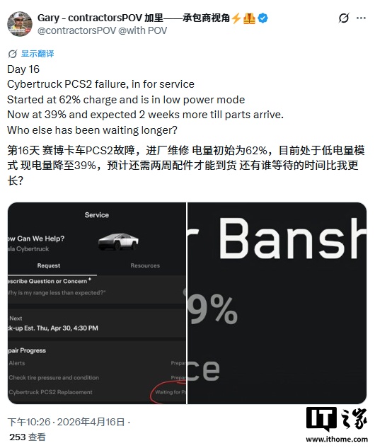 更让车主崩溃的是,服务中心目前面临严重的零部件短缺。涉事车辆的取车时间多次推迟,车主表示无法获知更换部件的明确交付周期。有车主在社交平台称,特斯拉售后员工曾坦言,“首批 7.5 万辆 Cybertruck 均搭载存在缺陷、易故障的 PCS 系统”。