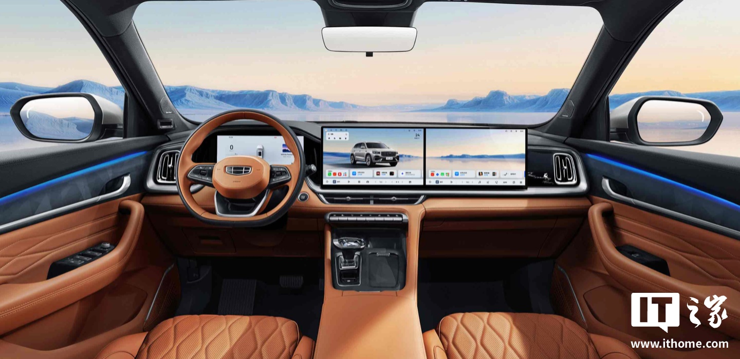吉利星越 L i-HEV 智擎混动和星瑞 i-HEV 智擎混动整体设计基本延续在售车型,星瑞星均采用了标志性的吉利东方美学设计理念。其中星越 L i-HEV 智擎混动搭载 25.6 英寸 HUD、星瑞星12.3 英寸液晶仪表与双 14.6 英寸中控屏。吉利星瑞 i-HEV 智擎混动则搭载 10.2 英寸液晶仪表以及 14.6 英寸中控屏。星瑞星两款车型均采用了 Flyme Auto 智能座舱系统,吉利欧亿配备高通骁龙 8155 芯片。星瑞星