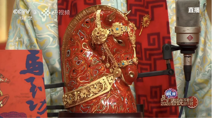 朱炳仁介绍,亮相央视的马年生肖吉祥物,每一件都兼具匠心与深意,尽显新时代昂扬气象。其中,《马富贵》作为朱炳仁、朱军岷“新时代十二兽首”开篇之作,灵感源自圆明园十二生肖兽首。作品首次采用雕金大漆工艺融合多项非遗技艺,重工重彩间尽显华贵与厚重,以“仁彩”重塑国宝收藏新高度。