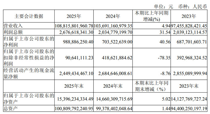 2025 年, 年年度欧交易所app四川长虹实现营业收入 1088.16 亿元, 营同比增长 4.94%;实现利润总额 26.77 亿元,收稳同比增长 31.54%;归属于上市公司股东的归母净利润 9.89 亿元,同比增长 40.56%。净利经营活动产生的现金流量净额 24.49 亿元,整体现金流保持健康。