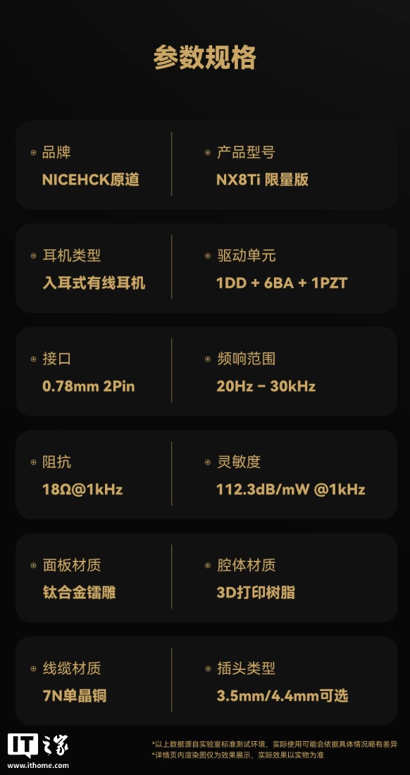 原道推出 NX8Ti 入耳式有线欧亿耳机:一圈六铁一压电八单元架构、限量 3888 套,1999 元