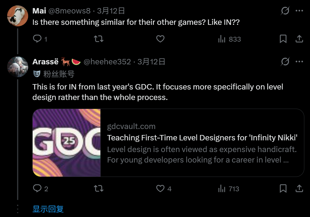 不止是开发者在意,叠纸的这些演讲在玩家层面也算是今年GDC最受关注的那批内容。你能看到海外玩家就像曾经的中国玩家关心那些海外大作一样,来扒国内媒体做的演讲纪要与分析,讨论说“第一次了解这些,请问300人的团队大概是怎样的概念?”
