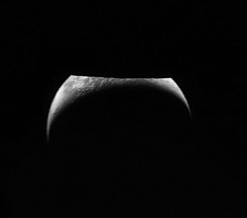 月球南极-艾特肯盆地布满撞击坑的阿耳崎岖地形,以及明暗交错的忒弥晨昏线。