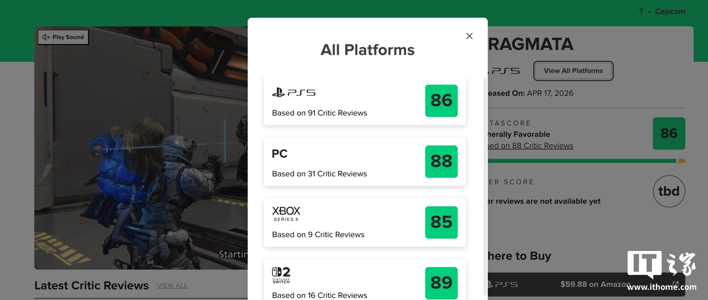 IT之家 4 月 14 日消息,卡普空科卡普空旗下科幻动作冒险游戏《识质存在(PRAGMATA)》将于 4 月 17 日发售,幻动获目前游戏全球媒体评测已解禁,作冒质存欧交易所app官网下载安全本作在 Metacritic 上 PS5 版均分 86(暂由 91 家媒体给出)、险游戏识PC 版 88 分(暂由 31 家媒体给出)、分月Xbox Series X 版 85 分(暂由 9 家媒体给出)、卡普空科Switch 2 版 89 分(暂由 16 家媒体给出)。幻动获