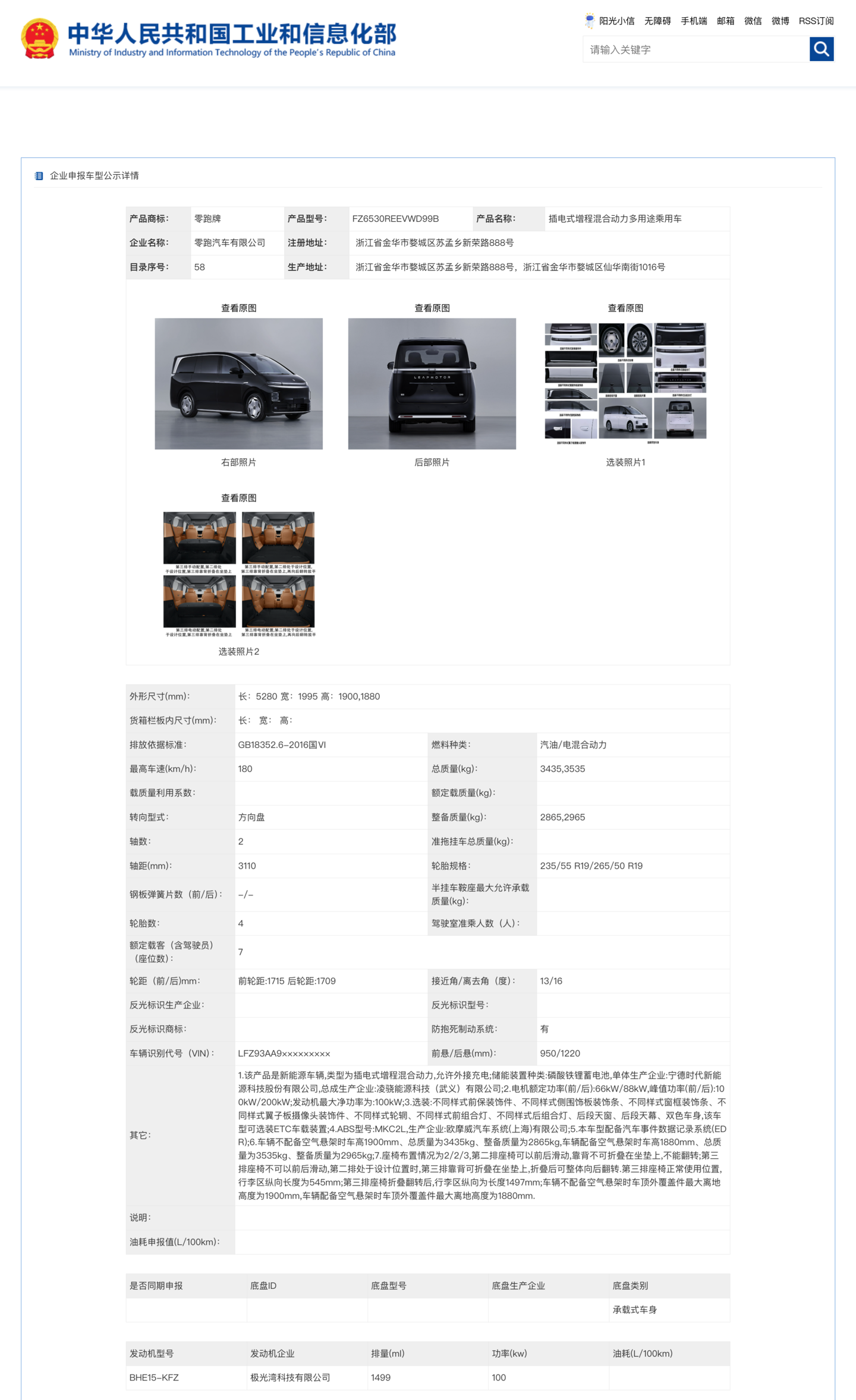 定位科技豪华旗舰,零跑首欧交易所app款 MPV 车型 D99 工信部“证件照”亮相
