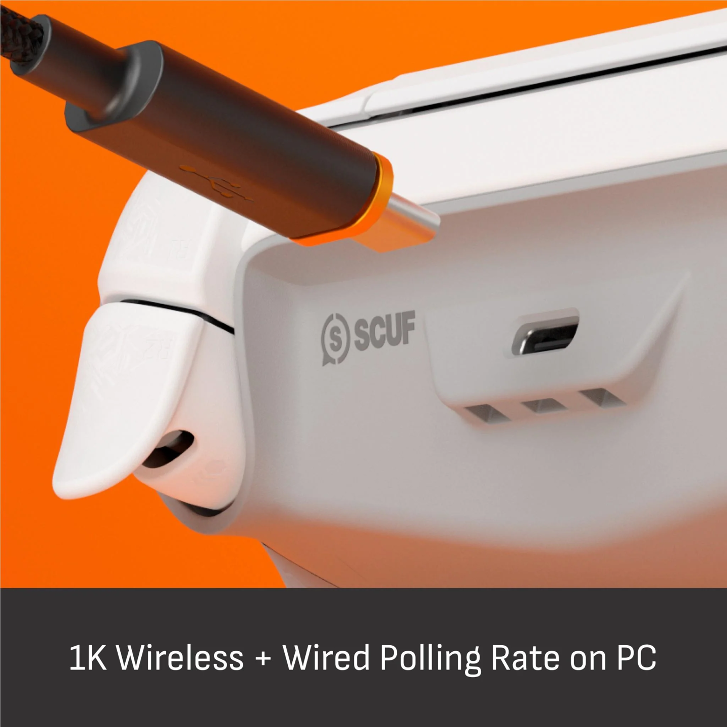 背部布局延续 Scuf 经典风格:4 个背键、2 个侧键、5 个 G-Keys 快捷键,总计 11 个可编程输入按键,玩家通过手机 App 进行按键映射。