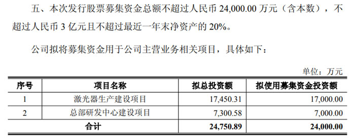 德龙激光拟2.4亿元定增加码核心业务 聚焦激光器生产与研发升级