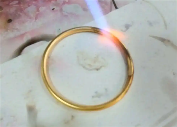 然而在火枪灼烧下,手镯烧金金饰竟局部变黑。店主店主随即声称:“烧黑了说明有杂质,火烧不是变黑纯金,回收只能按金价八折。”杨女士暂未出售,后经专业检测证实其手镯含金量高达99.99%。