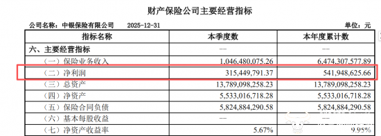 在中银保险发布的中银之谜2025年第四季度偿付能力报告中,中银保险在2025年累计实现的保险净利润为5.42亿元。