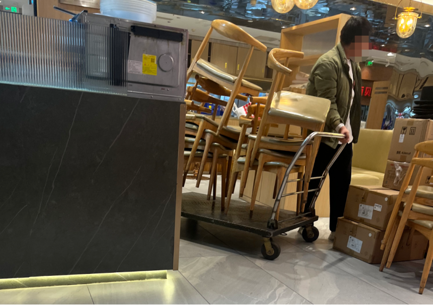 最后一桌收完,小月抱起四张摞起来的凳子,准备走。刘店长在后面喊了一声:“小月别搬了,让他们搬。”她没回头,抿着嘴往外挪。