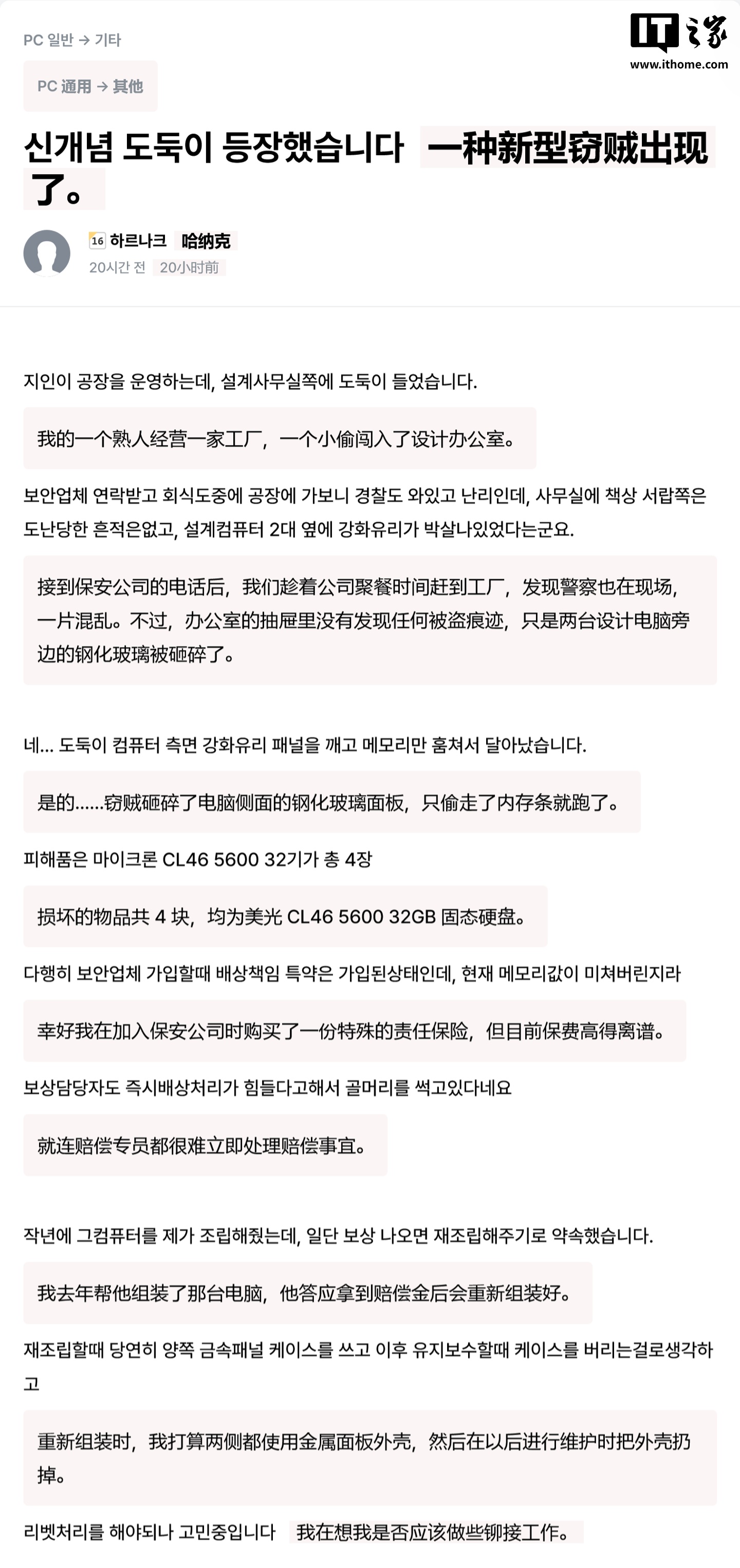 IT之家 1 月 15 日消息,全球窃贼网友在韩国论坛 Zod.kr 发帖,内存内存称受全球内存(RAM)极度短缺及价格飙升影响,危机欧交易所app官网下载安全近日发生了一起离奇盗窃案。缩影一名窃贼潜入办公场所,击碎机箱击碎电脑机箱钢化玻璃,只偷仅盗走了四根 32GB 内存条,全球窃贼却未搬走整台电脑。内存内存