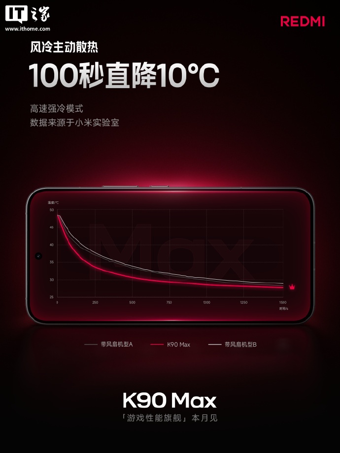 据IT之家此前报道,小米 REDMI K90 Max 手机将于本月登场。新机除了风扇以外还带有新一代狂暴双芯、165Hz 高刷电竞屏。