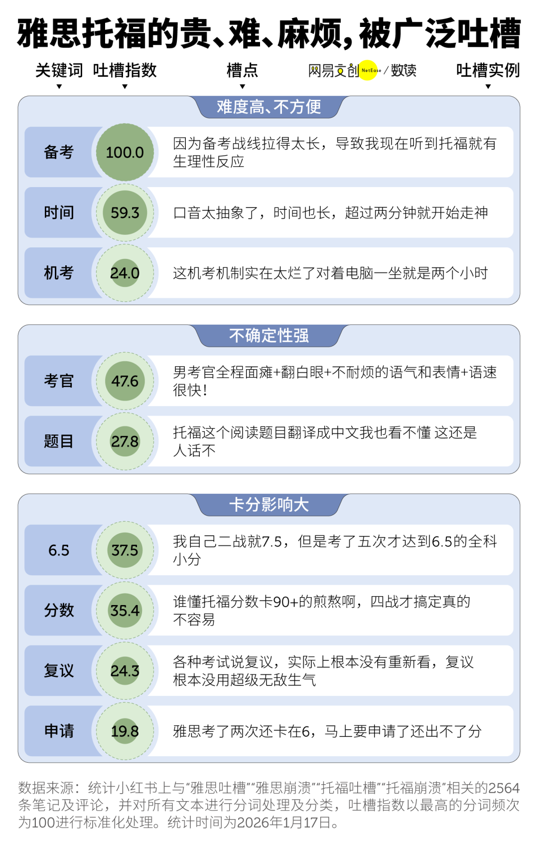 新托福这次看起来颇有诚意的改革,依然有许多考生不买账。题型和难度的调整变化,打得不少人措手不及,干扰了复习思路不说,出不了分,只会让27fall的考生哀嚎自己吃到了“改革黑利”。