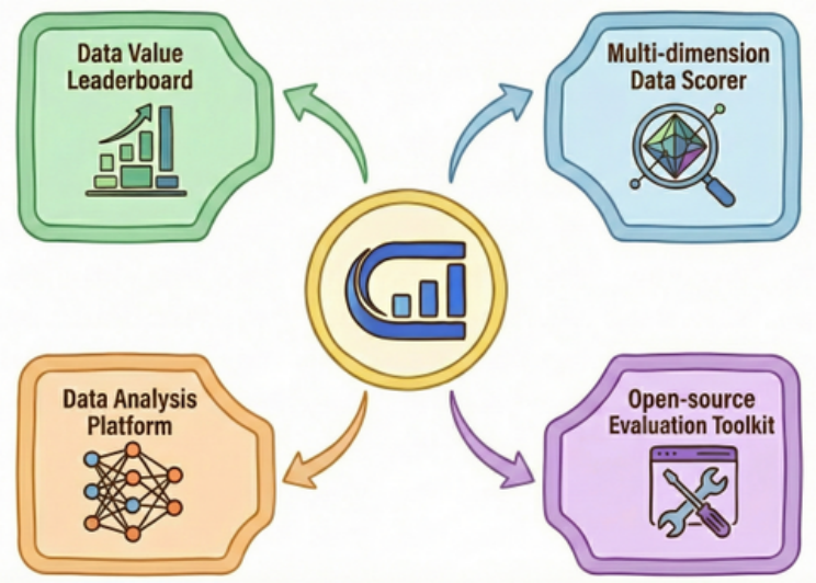 ODA 的核心理念非常明确:数据价值必须通过真实的训练来检验,而非主观的臆测。为此,我们立足于全新发布的正式版本,对平台进行了体系化的深度重构,由四个相互支撑的核心模块组成了这套完整的数据评测基础设施。这标志着 ODA 已经从最初的功能验证阶段,发展成为可以对数据价值进行系统化评测的重要平台。