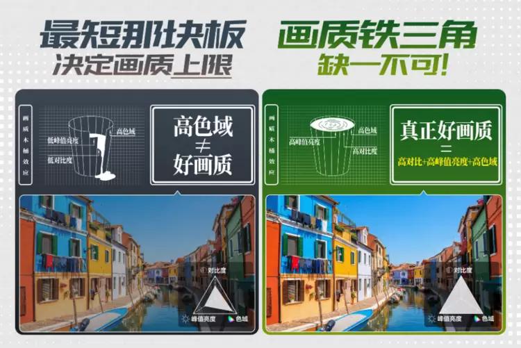 行业长期存在的画质“高色域=好画质”认知实则片面——真正的巅峰画质需由“高对比度、高峰值亮度、高色域”构成的“画质铁三角”共同支撑,其中高对比度更是塑造画面立体感与真实感的核心基石。