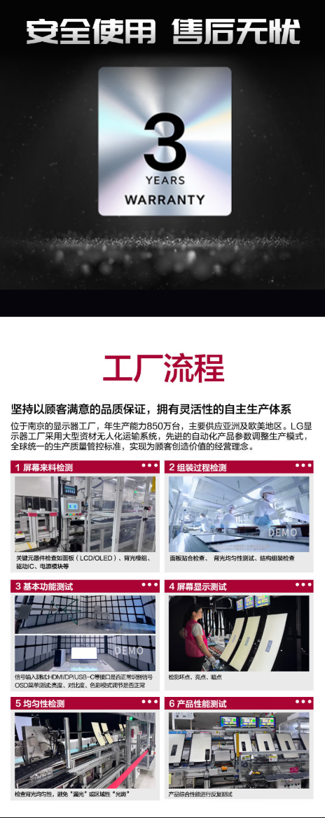 此外,这款显示器采用 3 微边框设计,拥有极简支架,视觉干扰较少,支持 100*100 壁挂安装。拥有 3 年质保。