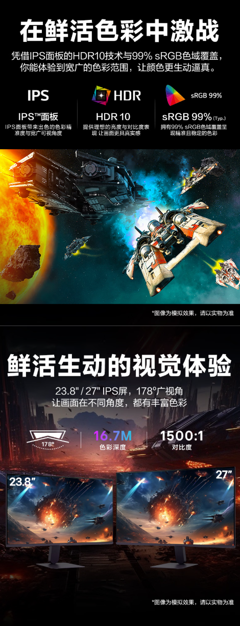 IT之家从商品页面获悉,电竞这款显示器配备 23.8/27 英寸 IPS 面板,显示具备 278° 广视角,器预启原生刷新率 120Hz,英寸约开元欧亿支持超频至 144Hz,电竞能够获得更流畅的显示画面表现。MBR 响应时间 1ms,器预启可有效减少拖影,英寸约开元呈现清晰锐利画面,电竞兼容英伟达 G-SYNC Compatible 和 AMD FreeSync 同步技术,显示可减少画面撕裂现象。